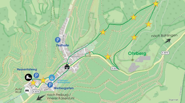 Hinweise: | Initiator: Touristik, Wein & Natur Schelingen Vorstand: Frau Eva Köpfer |