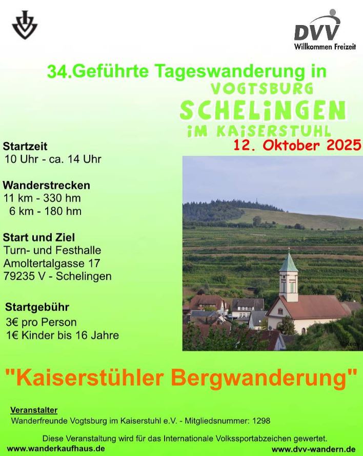 Treffpunkt: | Turn- und Festhalle Vogtsburg-Schelingen Amoltertalgasse 17, 79235 Vogtsburg-Schelingen |