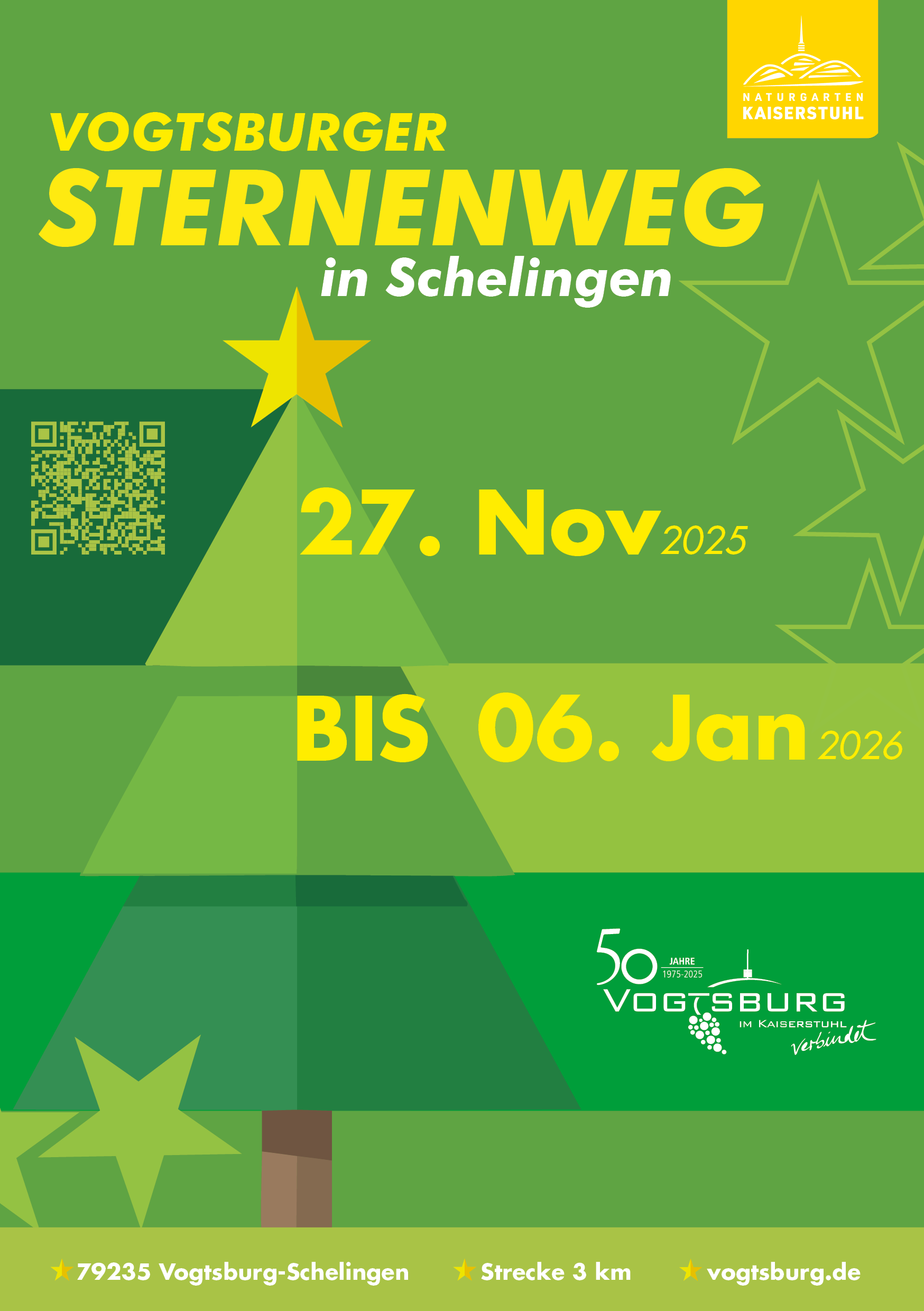 Taucht ein in die besondere Atmosphäre der Advents- und Weihnachtszeit bei einem Adventsspaziergang entlang des rund 3 Kilometer langen Sternenwegs rund um Vogtsburg-Schelingen. Folgt den gelben Sternen, entdeckt liebevoll gestaltete Stationen und lasst euch von der Schelinger Sternenwelt verzaubern.