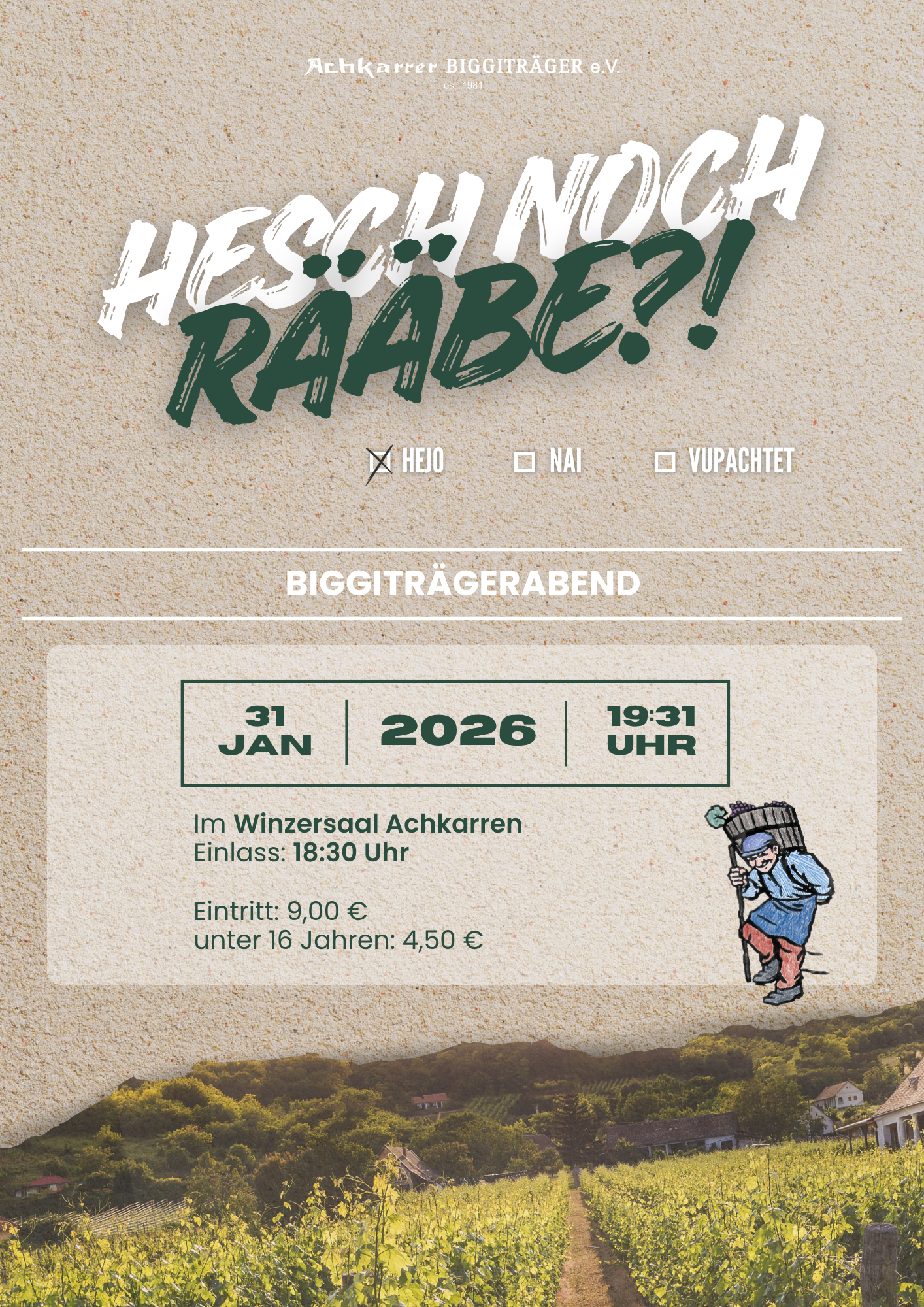 Unter dem Motto "Hesch noch Rääbe?!" erwartet Sie ein Abend voller Humor, Musik, Überraschungen und bester Stimmung.